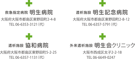 昭和53年に透析医療を開始して以来、明生会グループは患者様とともに歩んでまいりました。その長い道のりでは、患者様に様々な事を教わり、そして考え、経験と知識を培いました。その集積を医療現場で発揮すべく日々精励しております。日常の治療はもちろんの事、施設・住居にいたるまで、透析患者様を中心とした視点でサービスを展開してまいります。