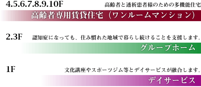 関連医療機関・施設に「救急指定病院」「透析施設」、「介護老人保健施設」「デイケアサービス」をもち、同じ建物内には「デイサービス」「グループホーム」「高齢者専用賃貸住宅」を併設する まったく新しいスタイルの施設が京橋駅すぐ近くに誕生しました。